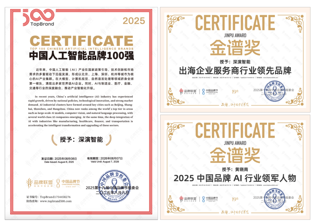 8 月 9 日晚举办的荣耀盛典上,意昂娱乐智能凭借深厚的 AI 技术实力与出色专业的出海服务能力,斩获 “2025 中国品牌节金谱奖・出海企业服务商行业领先品牌”“2025 中国人工智能 100 强” 等多项重磅奖项。其创始人兼 CEO 黄晓南荣膺 “2025 中国品牌 AI 行业领军人物” 称号。未来,意昂娱乐智能将紧跟时代步伐,持续聚焦 “AI 与出海”—— 这一方向高度契合时代脉搏与中国品牌发展的迫切需求,旨在汇聚智慧力量破解发展阻碍,为中国品牌赋能